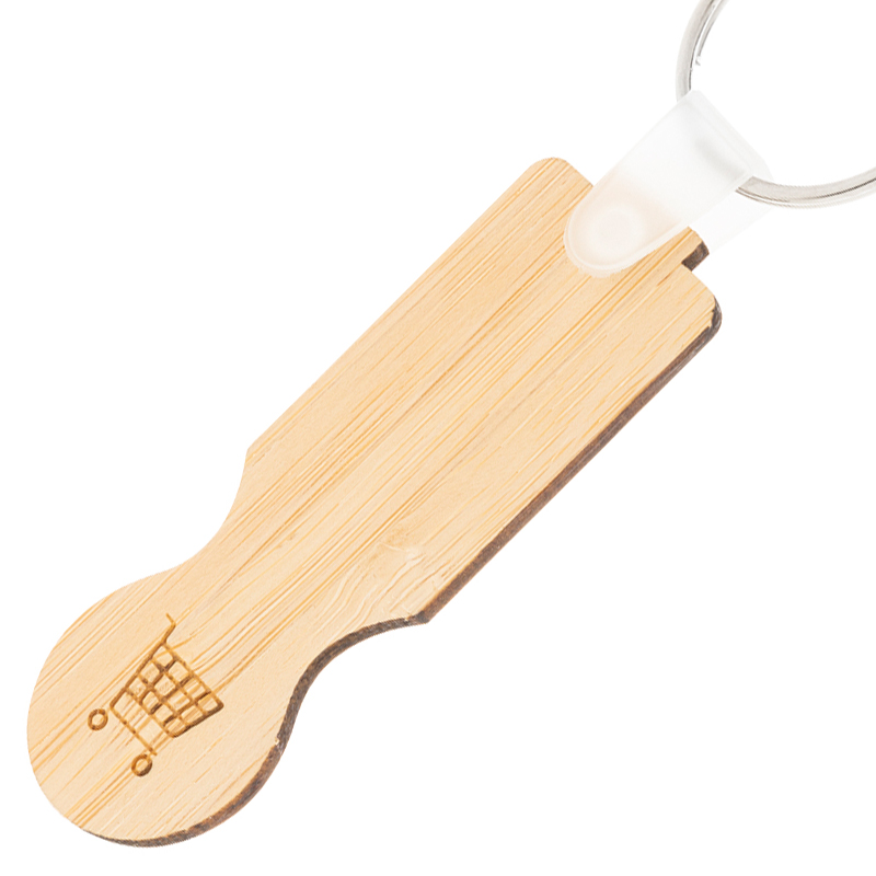 Bamboe multiplex sleutelhanger met winkelwagentje munt.