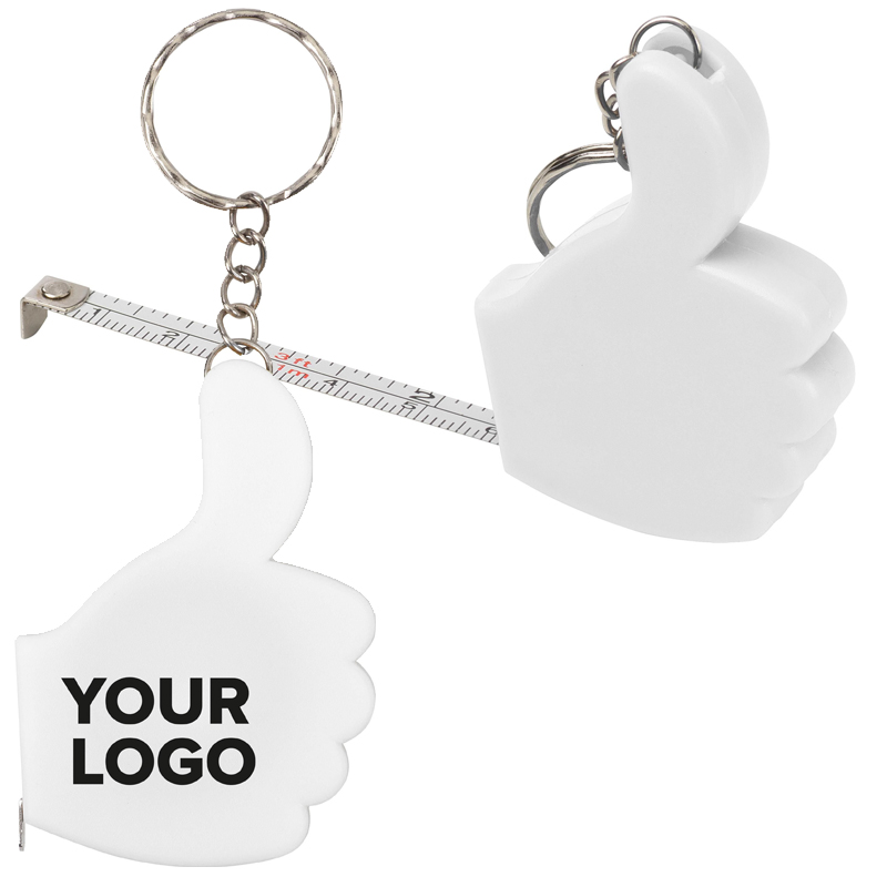 Sleutelhanger met kunststof rolmaat, (1 meter) in mm en inch, model 'duim'.