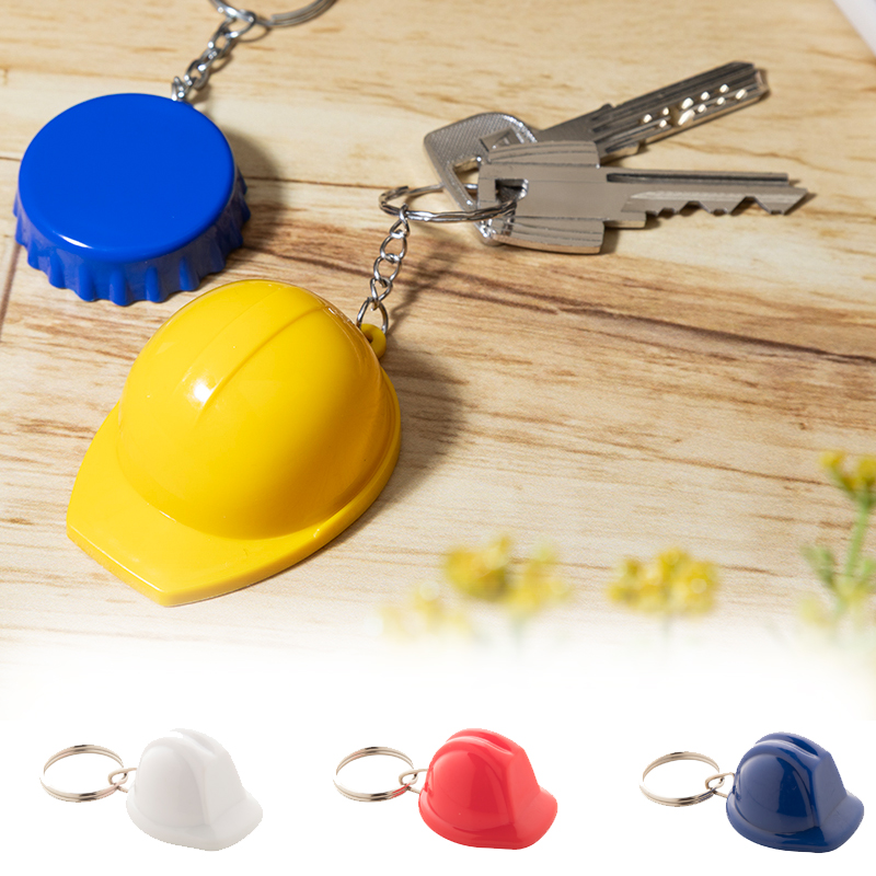 Plastic sleutelhanger in de vorm van een veiligheidshelm.