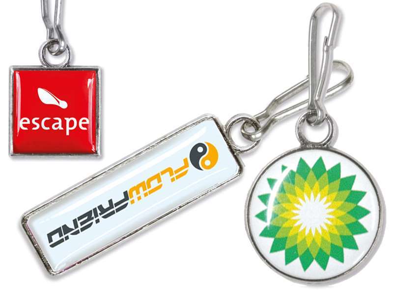 Met eenzijdige full colour doming. zipper puller kan ook bedrukt worden.