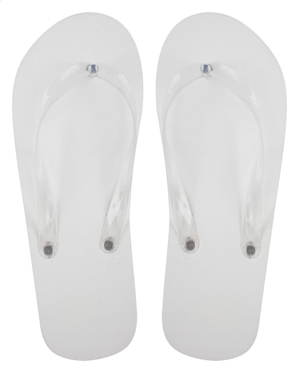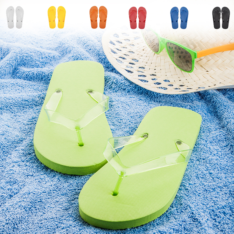 Polyester strand slippers met transparante PVC bandje in bijpassende kleur.