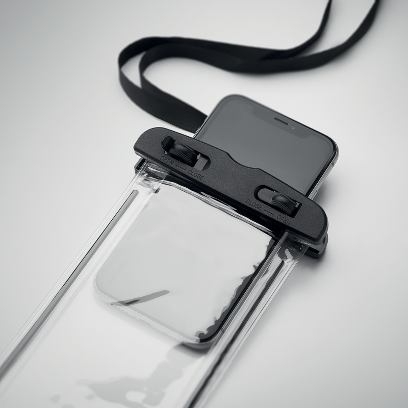 Waterdichte telefoonhoes met verstelbaar en afneembaar koord.