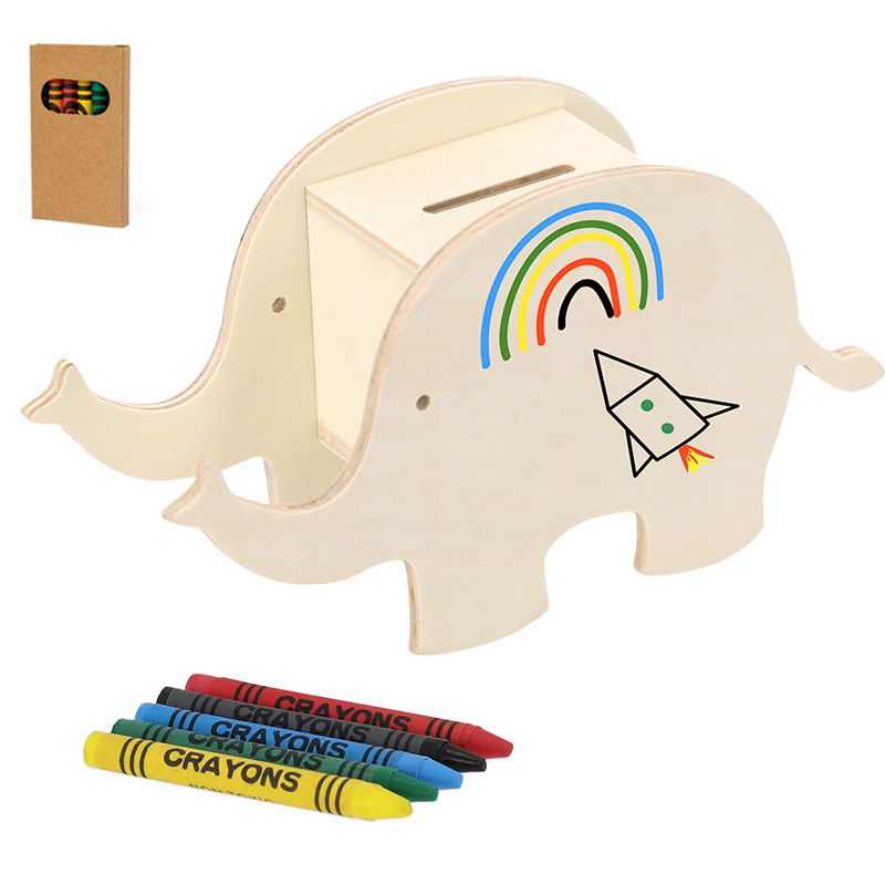 Inclusief gekleurde krijtjes waarmee het ontwerp van elke spaarpot kan worden gepersonaliseerd.