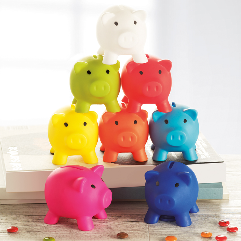 PVC spaarvarken met ABS dopje aan de onderkant.