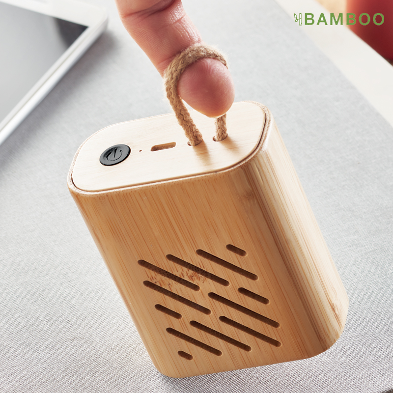 5,0 draadloze luidspreker met bamboe behuizing met LED–licht indicatie.