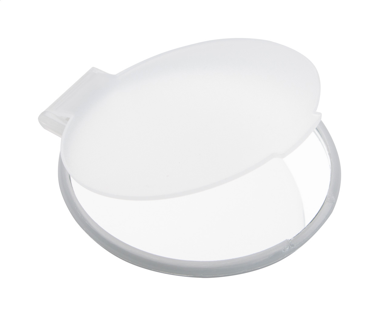 Ronde zakspiegel in doorschijnende gerecyclede PS-behuizing.