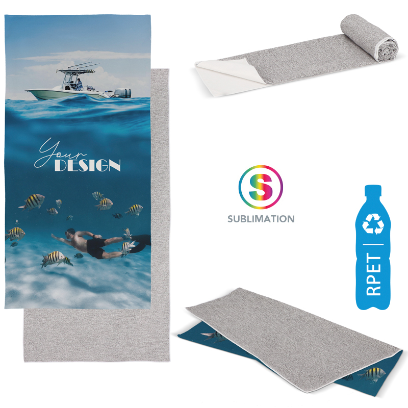Droog snel af met onze 70x140 cm sneldrogende handdoek, gemaakt van R-PET.