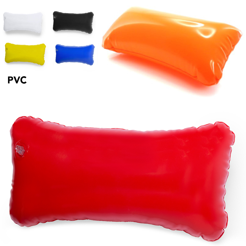Opblaasbaar kussen van stevig PVC en verschillende kleuren.