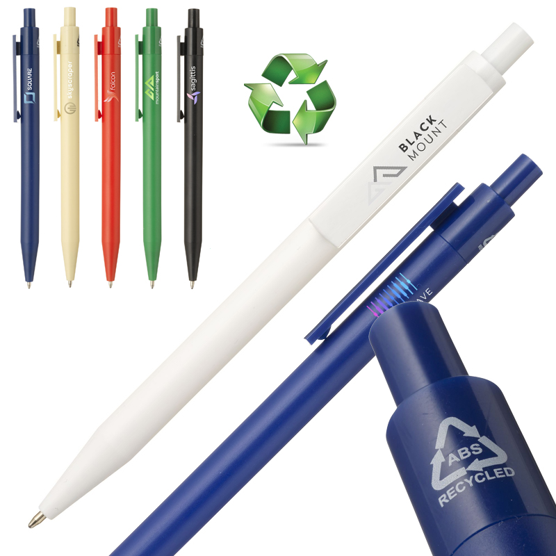 Blauwschrijvende balpen met een strak gevormde houder van 100% GRS-gecertificeerd gerecycled ABS.