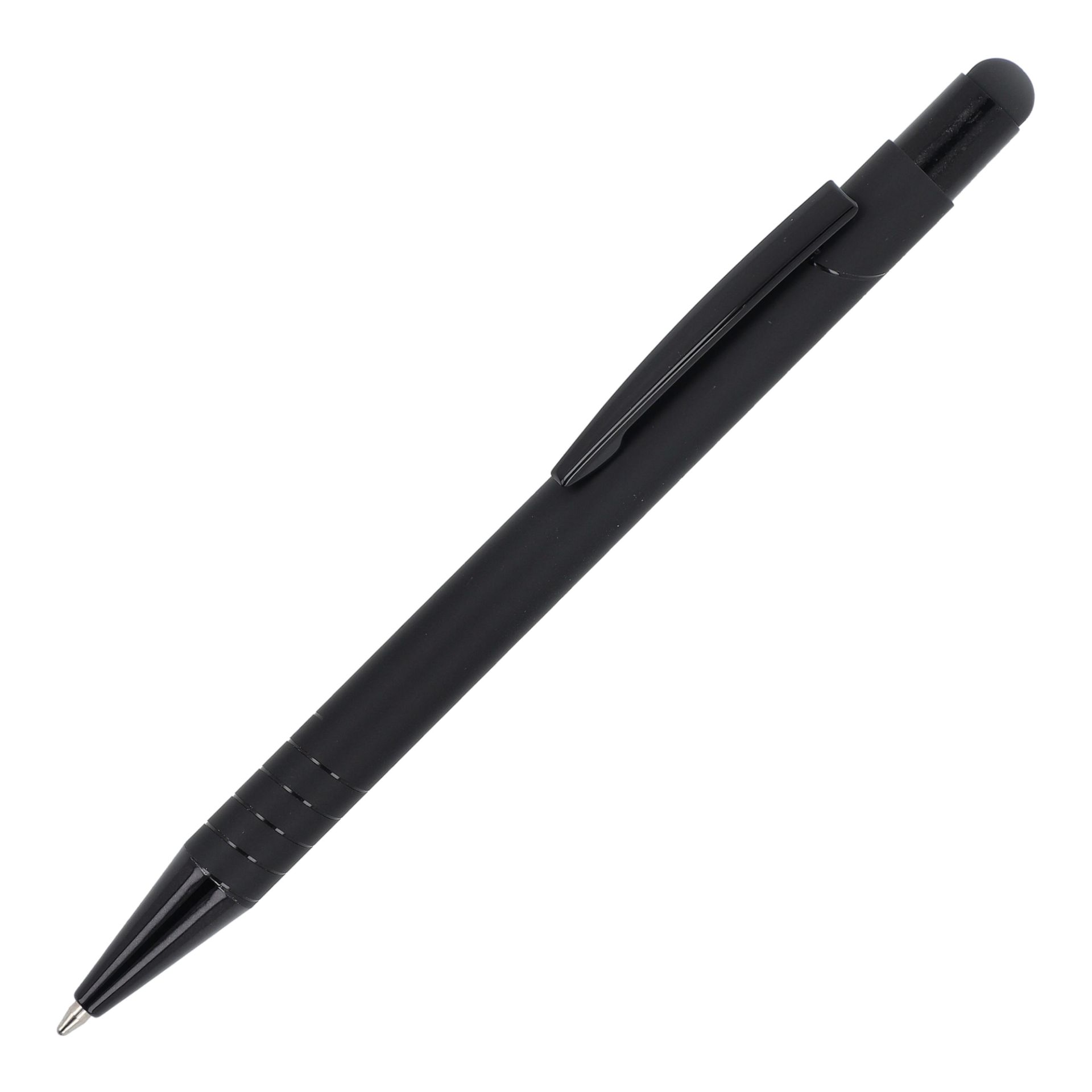 Balpen met metalen clip, stylusfunctie en een softtouch-afwerking.