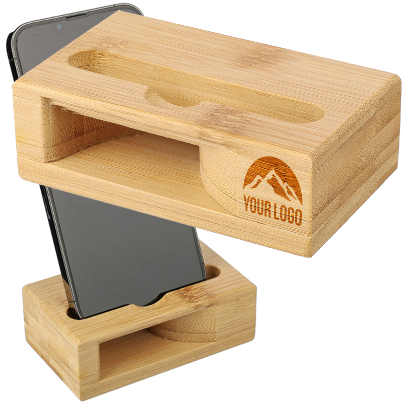Bamboe telefoonhouder met geluidsversterkerfunctie.
