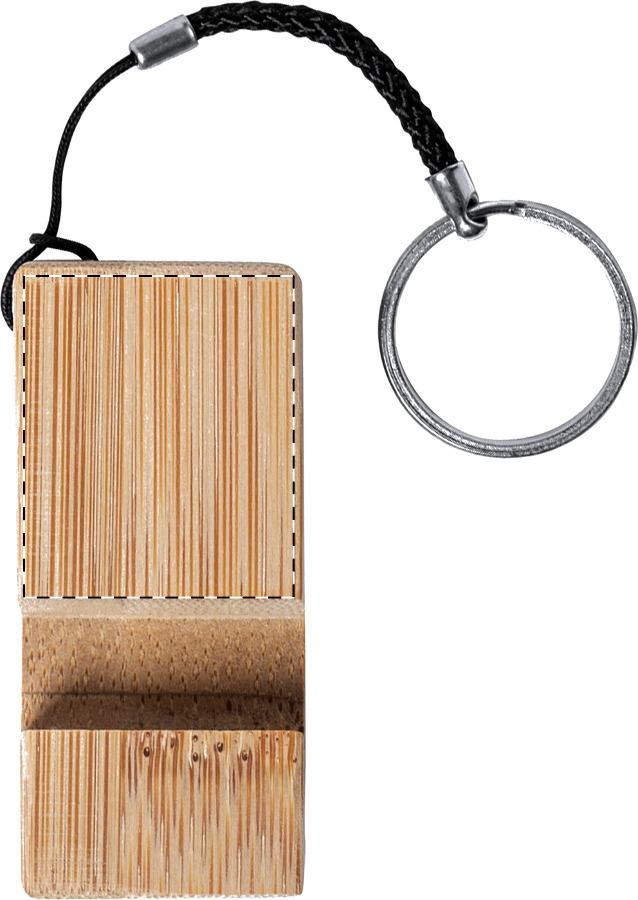 Sleutelhanger voor mobiele houder van bamboe met metalen ring.