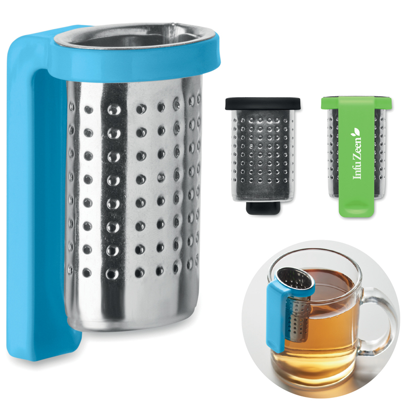 Thee–ei voor losse thee van roestvrij staal met PP haak.