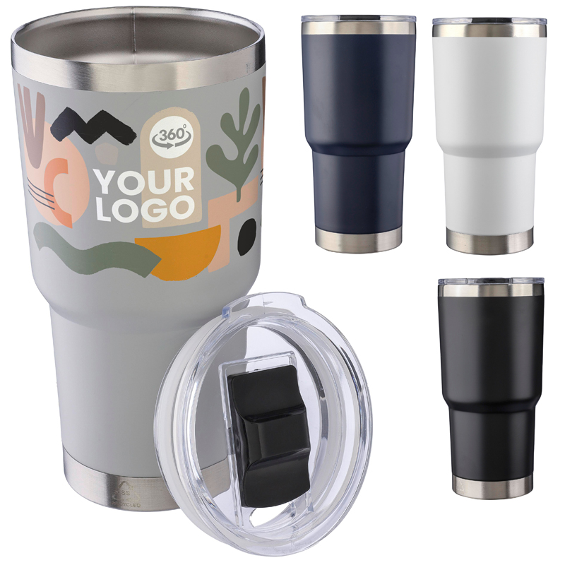 Roestvrijstalen dubbelwandige beker (590 ml) met PS–deksel.