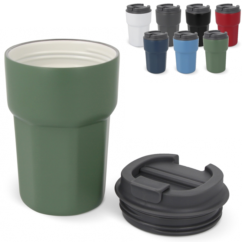 Deze 350 ml mok met siliconen deksel is gemaakt van roestvrij staal en gerecycled PP en houdt je drankjes warm of koud.
