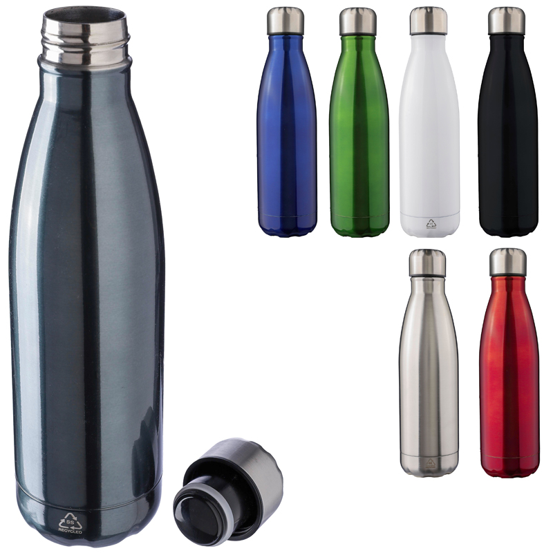 Gerecycled roestvrijstalen dubbelwandige fles (500 ml) met schroefdop.