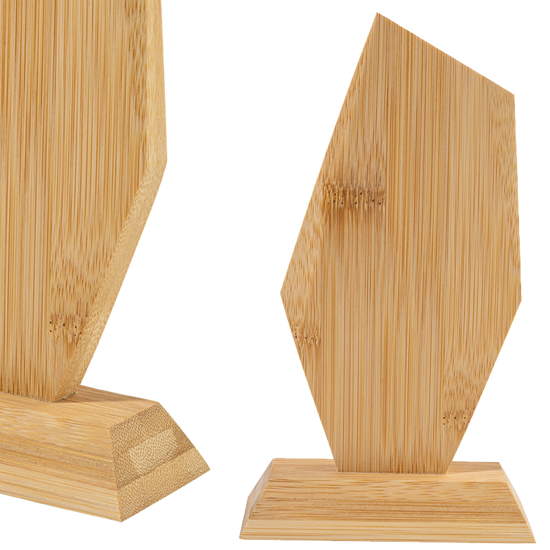 Hoekvormige bamboetrofee, in kraftpapier geschenkdoos.