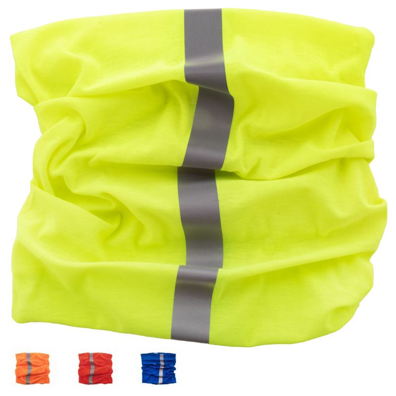 Multifunctionele sjaal van polyester met reflecterende strepen.