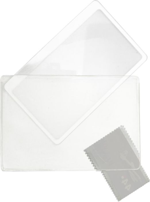 Ultra dun PVC vergrootglas, rechthoekig model, incl bescherm hoesje.