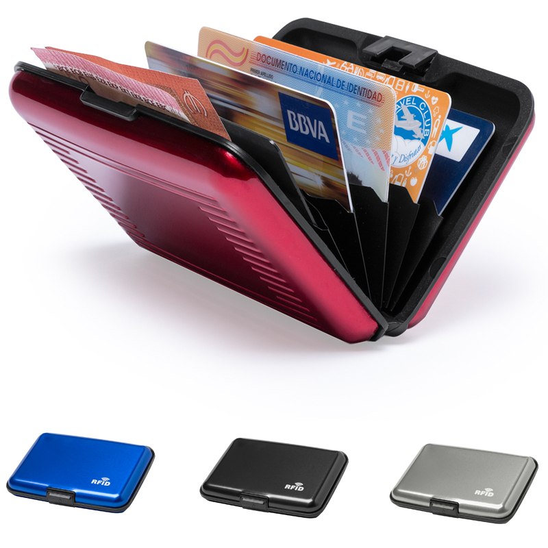 Kaarthouder met RFID (Radio Frequency Identification) beveiligingstechnologie die kaartgegevens beveiligt.