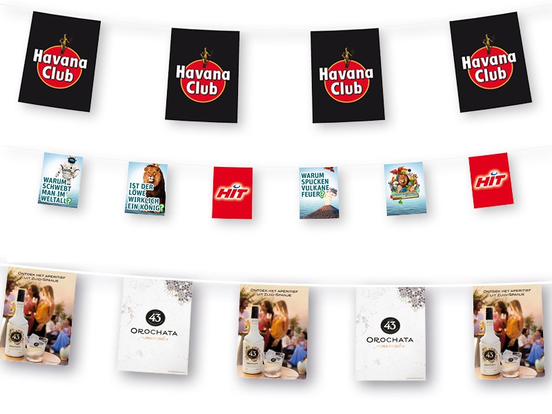 Met een minimumafname van 50 stuks (indien u kleinere oplages wenst, vraag ons vrijblijvend info). Wimpellijn 5 meter kan ook digitaal vanaf 1 stuk gedrukt worden, vraag bij ons verkoopteam een offerte aan.