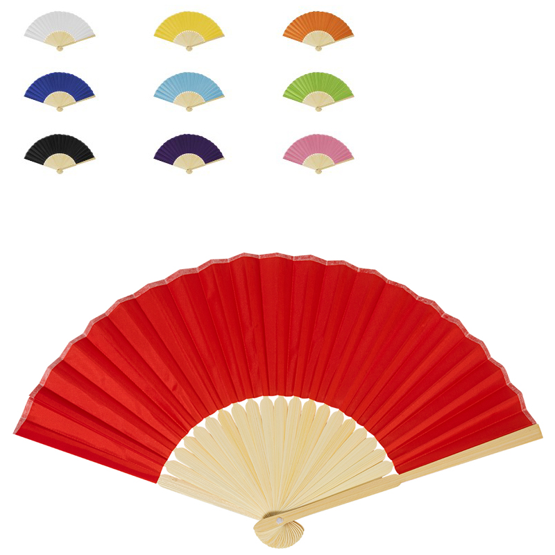 RPET polyester handwaaier met houten ribben.