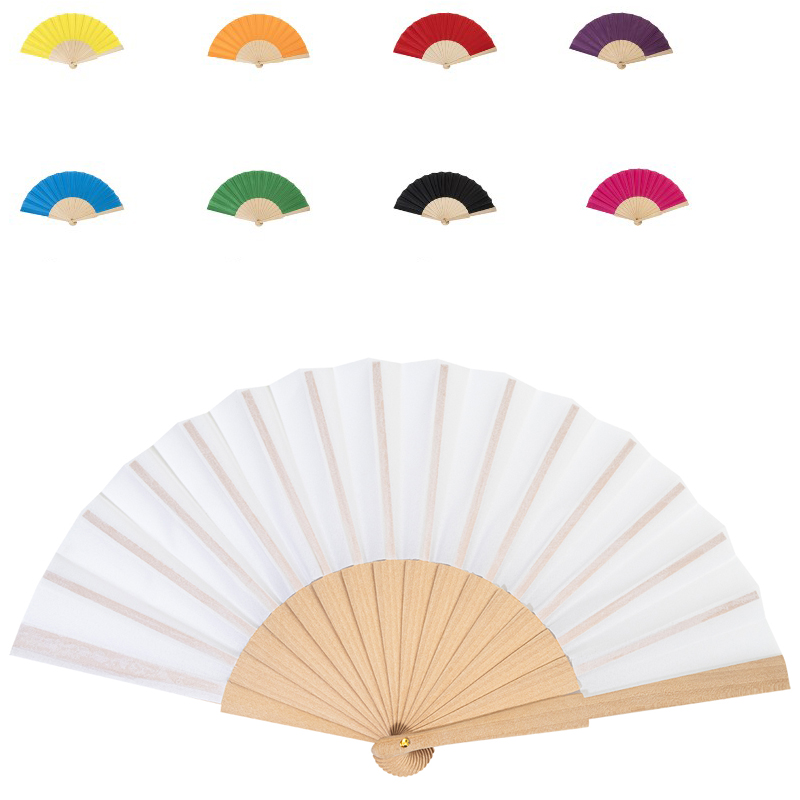 RPET polyester handwaaier met houten ribben.