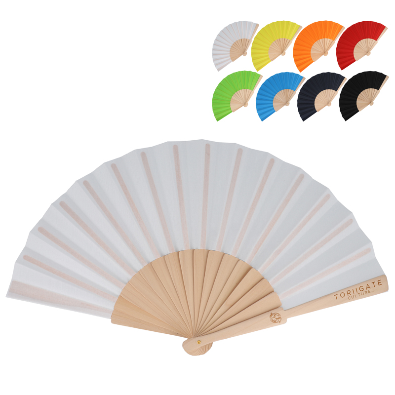 Verkrijgbaar in verschillende felle kleuren met houten handvat; ideaal voor buiten evenementen en hete zomerdagen.