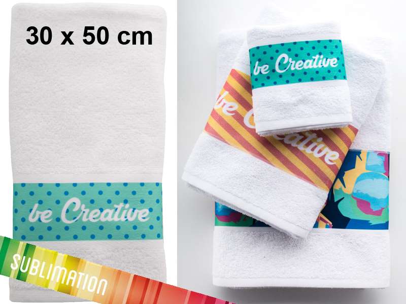 100% katoen, 400 g Terry handdoek met polyester rand voor sublimatiedruk prijs is inclusief sublimatie druk.
