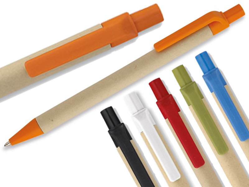 Balpen met drukmechanisme, papieren grip en PLA–onderdelen (van 100% biologisch afbreekbare maïs).