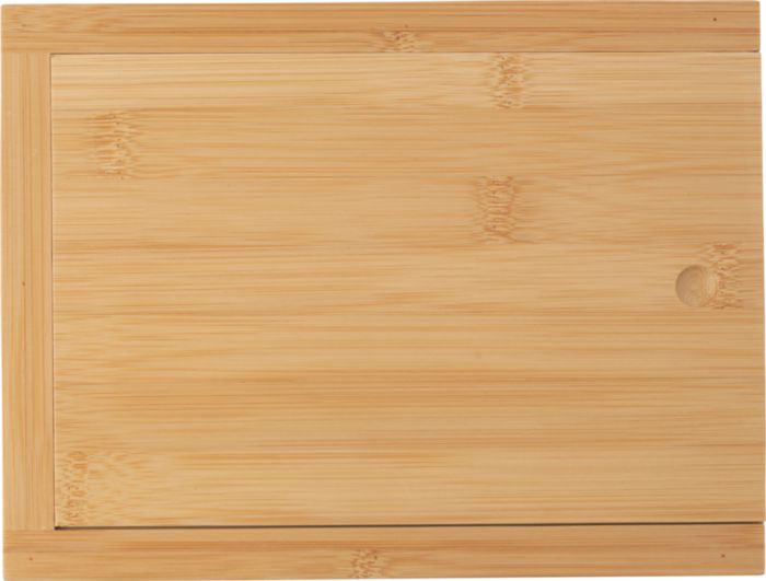 Bamboe kaas– en wijnset, bestaande uit: kurkentrekker, wijnstop, kaasrasp en mes.