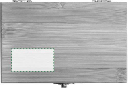 Wijn cadeau set in bamboe doos, bestaande uit een roestvrijstalen kurkentrekker, wijnring en flessenstopper, met bamboe accenten.