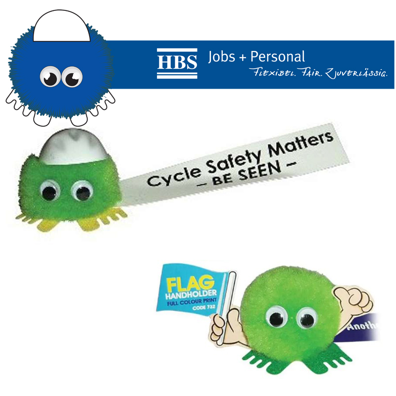 Vlag supporter. pompon bol naar keuze met full colour bedrukt lint en zelfklevende voetje (keuze uit 7 kleuren).