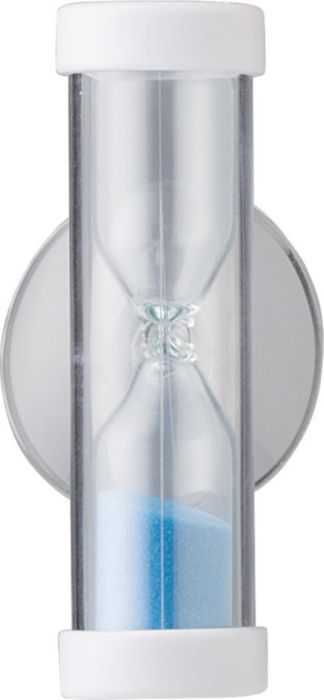 Glazen kleine zandloper met ABS uiteinden en zuignap.