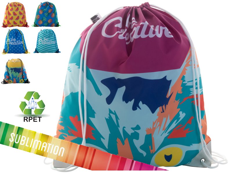 Met all–over sublimatiebedukking en onderscheidend RPET–label.