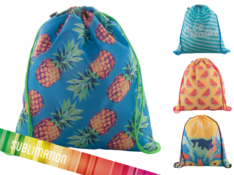 Op maat gemaakte tas met trekkoord met gekleurde touwtjes, 190T RPET.